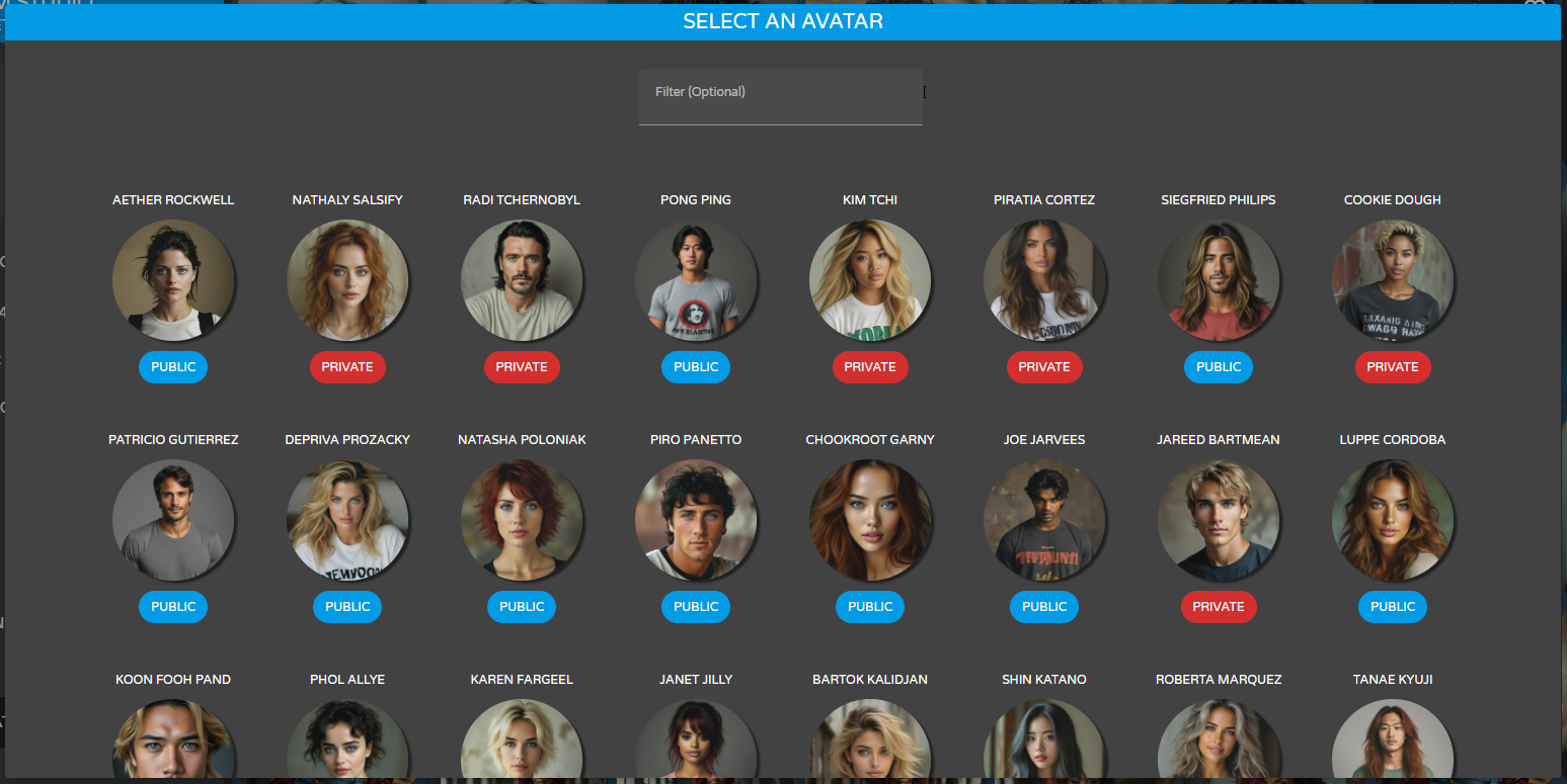 You don't need an Avatar to create any image on Nzym Studio. But if you want you can select one among the Public Avatars and the Private Avatars you own: