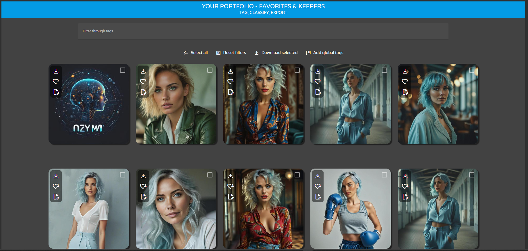 In Nzym Studio, clic on any image to access more options, available on the left-hand side of the image.